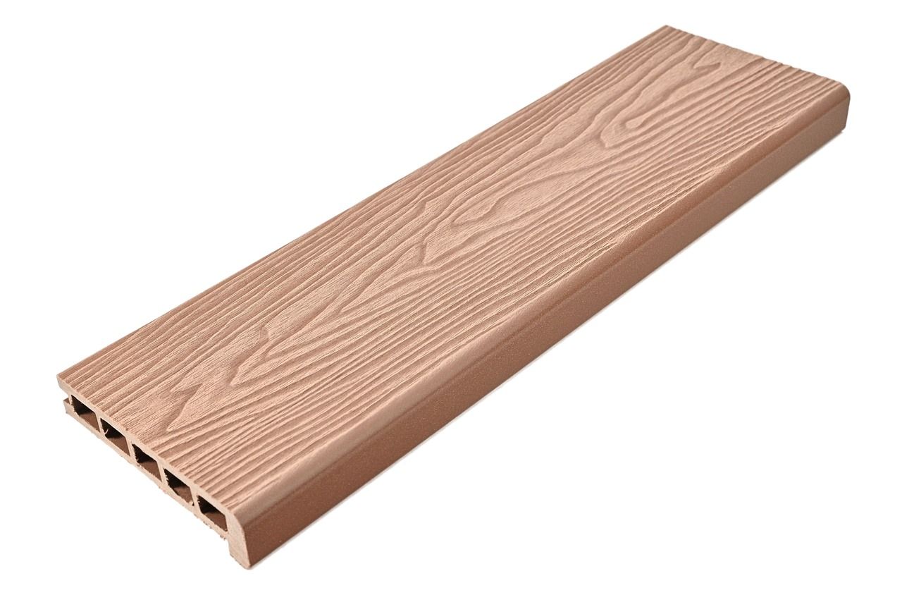 Финишная/стартовая доска это пустотелый профиль с базовыми размерами 150Х4 мм. Доска относится к категории "Стандарт" и рекомендована для использования на объектах с умеренными нагрузками. Отлично подходит для дома и дачи. Доска с тиснением поверхности. Тиснение наносится на шлифованный профиль, что дает контрастный рисунок. Террасные доски из ДПК не гниют, не коробятся, не теряют цвет и не требуют специфического ухода и подходят для эксплуатации в любой климатической зоне. Срок службы доски превышает 25 лет.